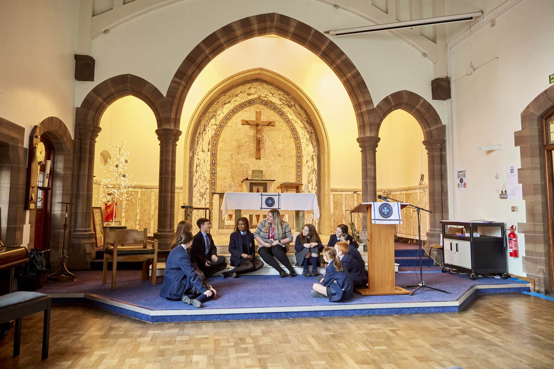 Prayer life and Chaplaincy are at the heart of our school. Local clergy come into school weekly to celebrate Holy Mass. Holy Mass is also available on special occasions throughout the year, such as; Year 7 Welcome Mass, Our School Feast Day and Year 11 and Year 13 Leavers Mass.