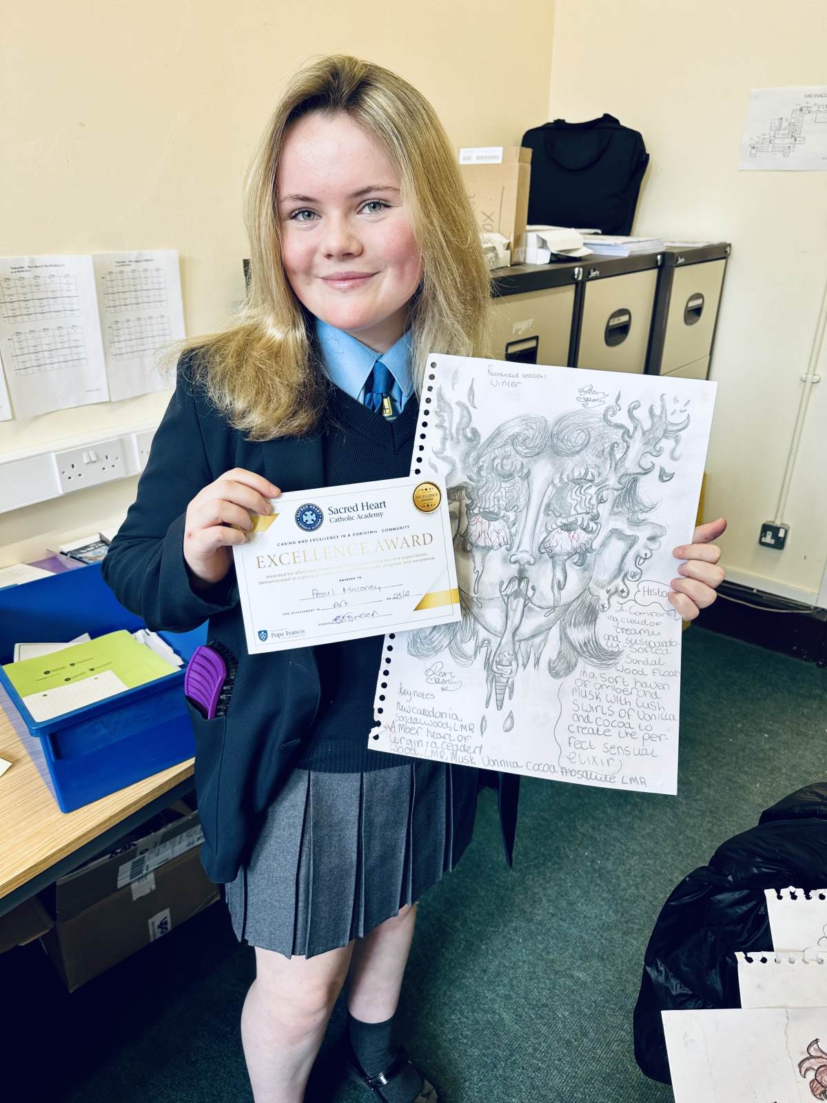 A talented Year 9 pupil has been praised for pieces of ‘fantastic’ art she created in her own time.
